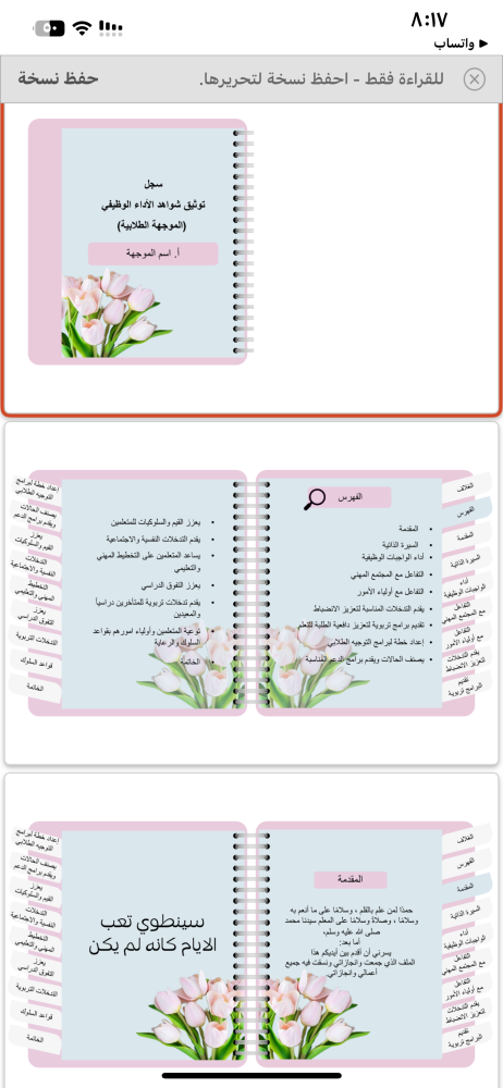 منتج رقمي _ ملف الاداء الوظيفي للموجهه الطلابية